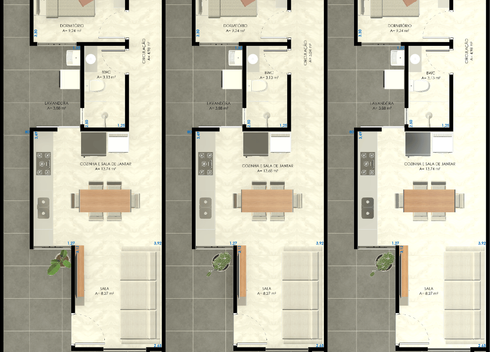Com 60 m² de área construída, este imóvel foi planejado para oferecer conforto, praticidade e um toque contemporâneo.